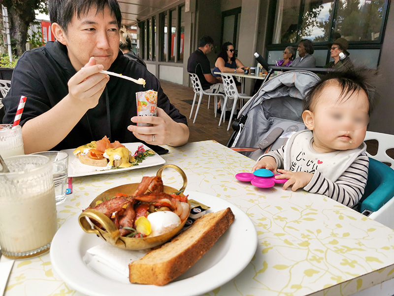 ニュージーランドを旅行していて感じたのが、赤ちゃんウェルカムな雰囲気の飲食店の多さ。何と言っても乳幼児用の椅子が用意してある率が高い。あとテラス席が多いのもいいよね、子連れだと静かな店内より外の方が気楽なので。